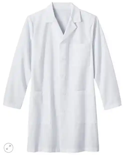 prenda de protección unisex, generalmente de manga larga y color blanco, con cuello tipo sport, tres bolsillos (uno superior y dos inferiores) y cierre frontal de botones