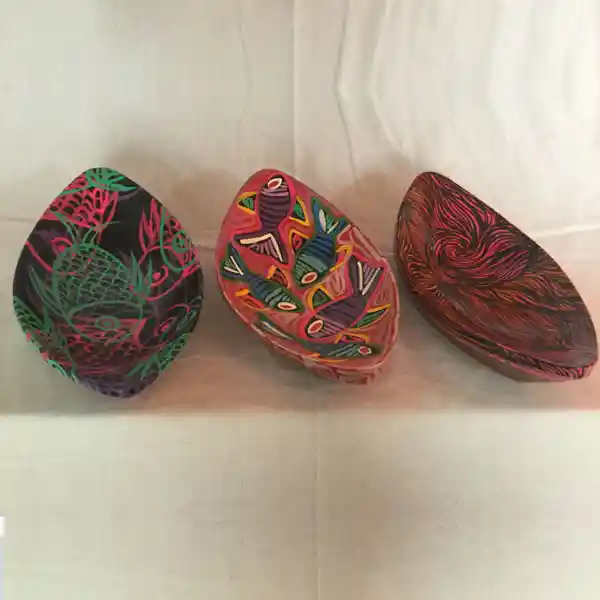 Batea pequeña ovalada, elaborada en madera y decorada a mano