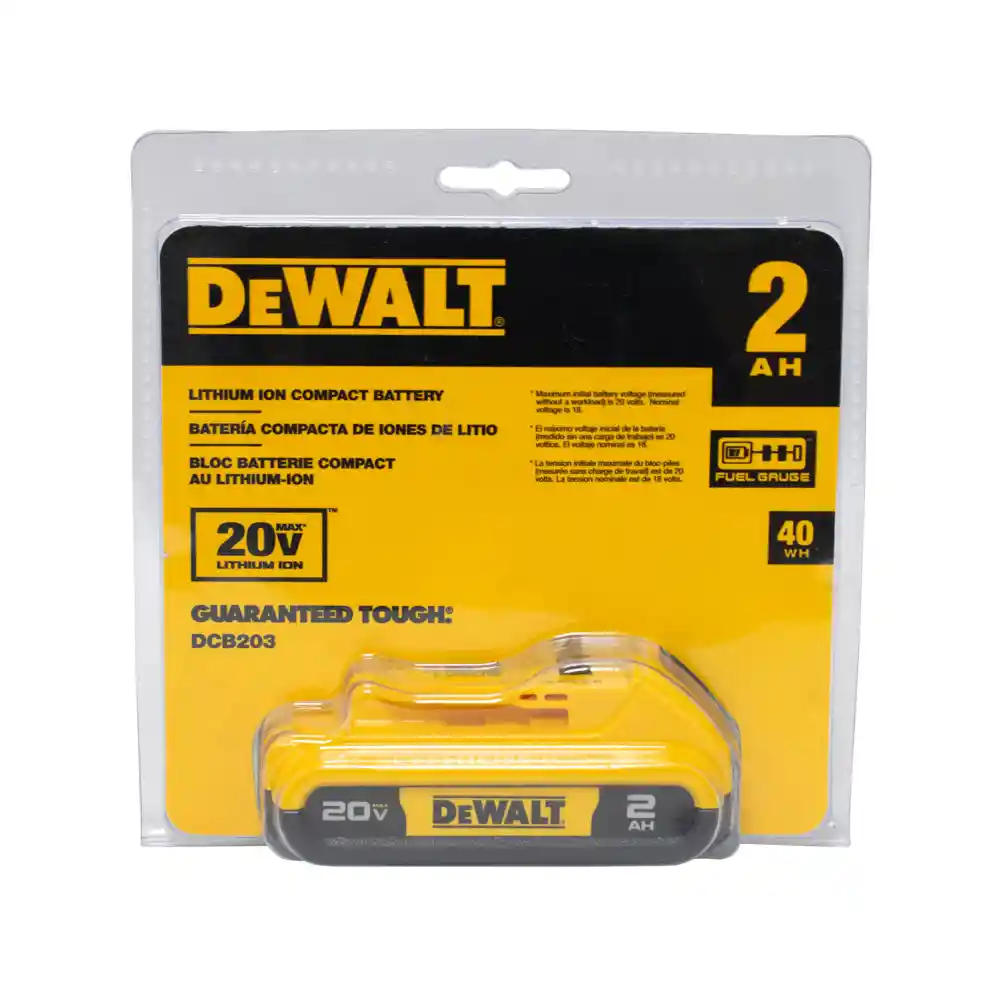 La Batería Dewalt DCB203 de 20V Ion Litio de 2Ah ofrece alta potencia y una excelente duración. Compatible con herramientas Dewalt, ideal para proyectos que requieren rendimiento continuo y eficiencia en trabajos prolongados.