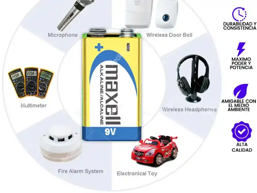 La Batería Alcalina Maxell 9V Blister Cuadrada es la solución ideal para dispositivos que requieren una fuente de energía confiable y duradera. Esta batería de alto rendimiento es perfecta para una amplia variedad de aparatos como detectores de humo, radios, juguetes electrónicos y más. Características principales: Alta capacidad: Proporciona una fuente de energía confiable para dispositivos que requieren 9V. Diseño cuadrado: Forma compacta y fácil de usar en dispositivos que requieren este tipo de batería. Larga duración: Ofrece una energía duradera para un rendimiento constante y prolongado. Blister individual: Empaque seguro y conveniente para su almacenamiento y uso. Beneficios para el usuario: Fiabilidad y potencia: Ideal para dispositivos que necesitan energía continua y confiable. Fácil de almacenar: El blister asegura que la batería se mantenga en buen estado hasta su uso. Versatilidad: Compatible con una amplia variedad de dispositivos, como medidores, radios y sistemas de seguridad. Llamado a la acción (CTA): ¡Aprovecha la durabilidad y confiabilidad de las baterías Maxell! Contáctanos por WhatsApp para más detalles y disponibilidad de stock. Confianza y seguridad: Compra con seguridad y disfruta de un envío rápido y eficiente. ¡Tu pedido llegará en perfectas condiciones!