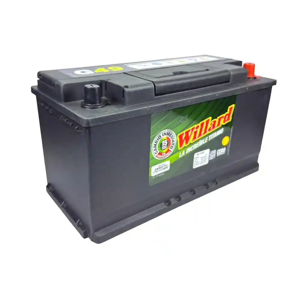 Batería automotriz WILLARD de 12V con 1250 amperios. Producto nuevo, sellado y listo para su uso.