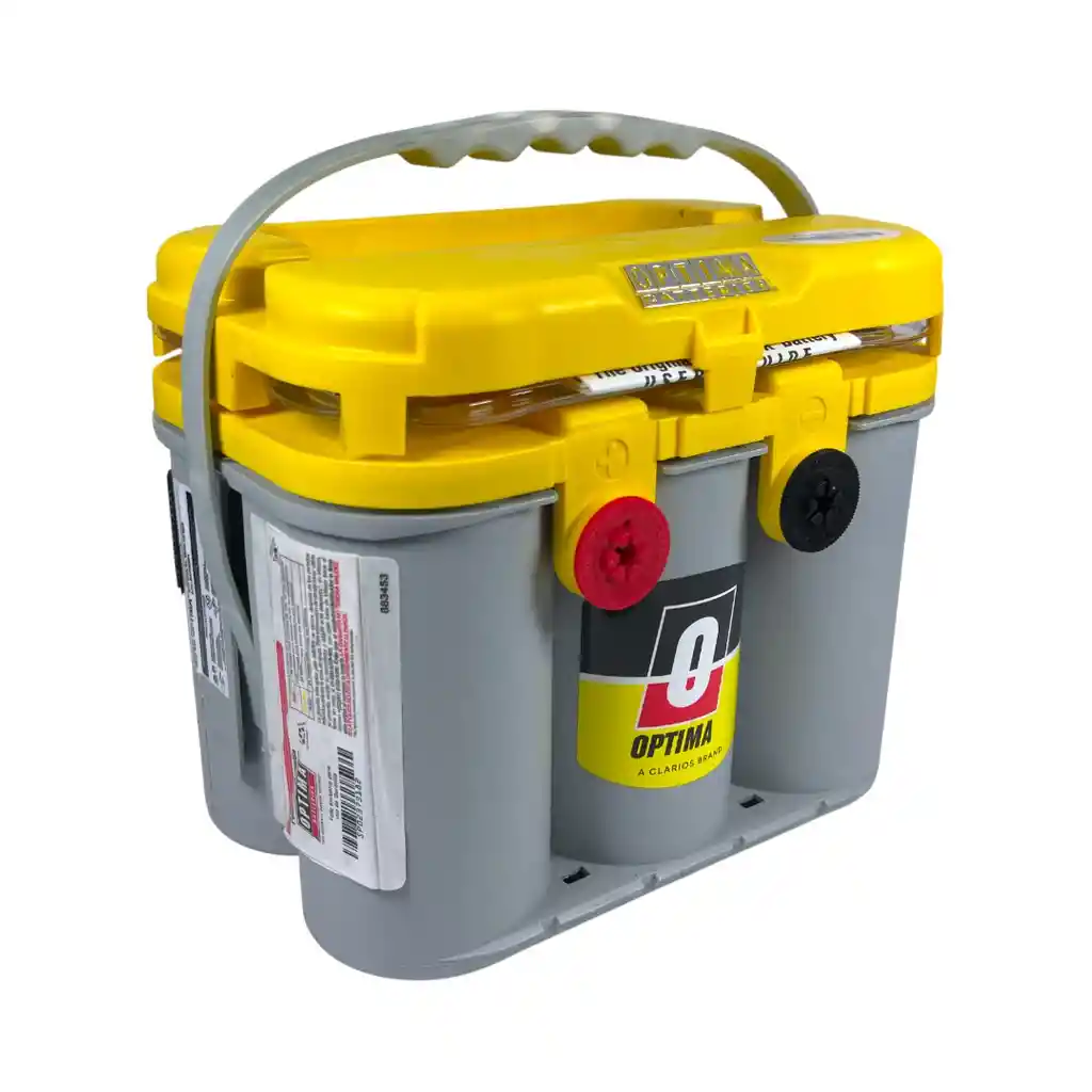 Batería automotriz OPTIMA de 12V con 55 amperios. Tecnología AGM de celdas espirales, reconocida por su alto desempeño y resistencia. Ideal para aplicaciones exigentes.