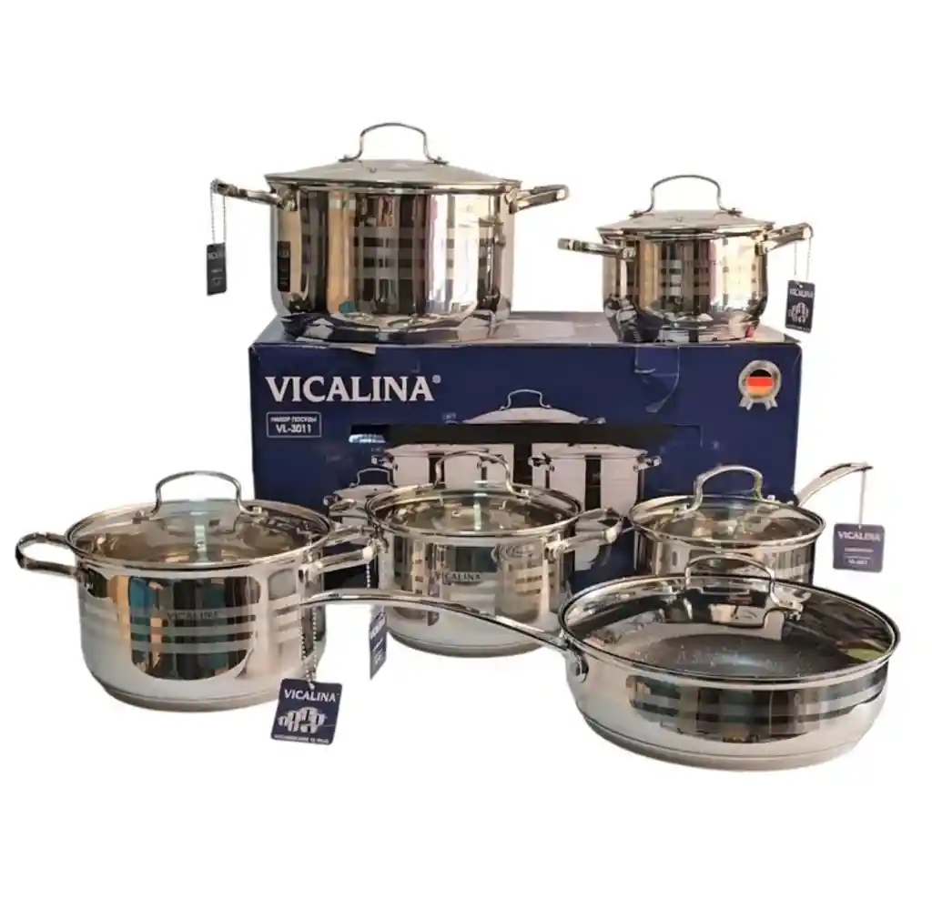 La batería cuenta con un termodifusor de calor que distribuye de manera uniforme el calor a toda la olla así la llama del fogon sea pequeña todas las piezas de las ollas son 100% acero quirúrgico Características: -Bateria en acero quirúrgico -Tapas con escapes de vapor -Termo-difusor de calor en la base -Apta para cocinar con cualquier estufa( gas,inducción,halógena) CONTENIDO: -1 ollas de 16 cm con capacidad 2.2 litros con tapa -1 ollas de 16 cm con capacidad de 2.2 litros con tapa -1 ollas de 18cm con capacidad de 3 litros con tapa -1 ollas de 20 cm con capacidad de 4 litros con tapa -1 ollas de 24cm con capacidad de 6 litros con tapa -1 sarten de 24 cm con capacidad de 3.3 litros con tapa