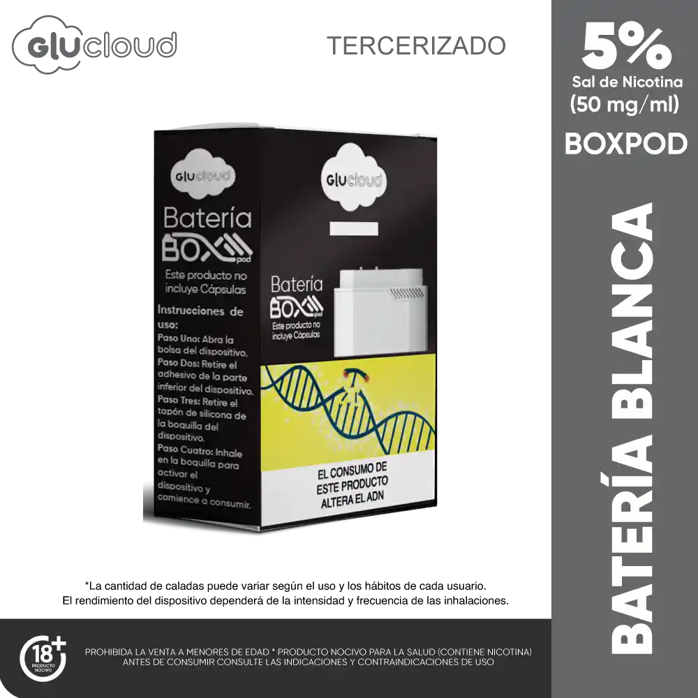 Bateria para Glucloud BoxPod, ideal para un uso práctico y económico. Cuenta con 600mAh de capacidad, carga rápida tipo USB-C y conexión magnética para instalar fácilmente los pods. Ofrece una calada automática sin botones, tamaño compacto y rendimiento estable, permitiéndote reutilizarla y solo cambiar la esencia cuando se acabe.