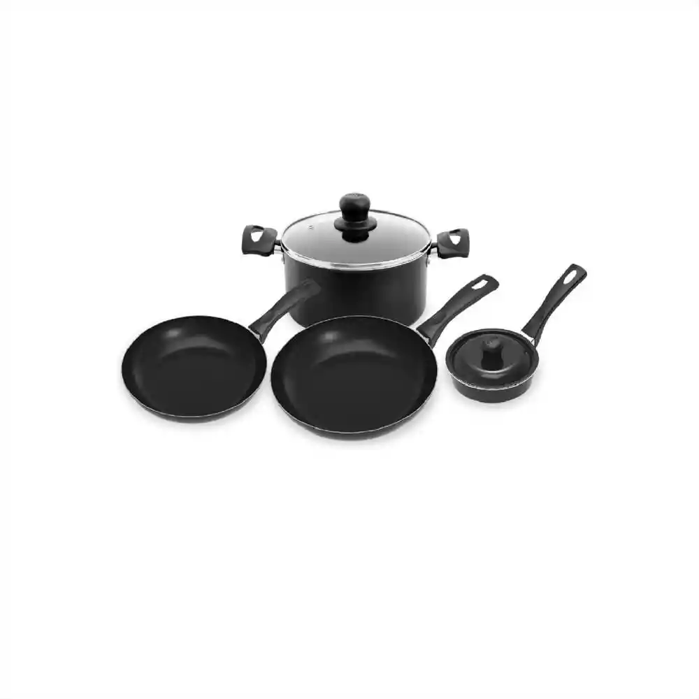 Bateria Imusa 6Piezas 5861030715 Negra Base Difusora Especial Para Distribuir De Manera Uniforme El Calor, De Esta Manera Los Alimentos Quedaran En La Cocción Perfecta.Antiadherentebasic Interior Y Exterior Que Resiste Hasta5.000 Ciclos De Abrasión. Al Ser Antiadherente Es Mas Fácil De Lavar Materiales Aptos Para El Contacto Con Alimentos. Cumple Con Las Normas Y Estándares Internacionales, Para Que Seaamigable Con El Ambientey Cuide La Salud. Detalles: Material: Aluminio Antiadherente. Color: Negro Material Tapas: Vidrio Material De Las Ollas: Acero Inoxidable Con Fondo Difusor 6 Piezas Olla 20Cm Con Tapa De Vidrio (Comparte Tapa Con Sarten 20Cm), Sartén 24Cm, Sartén 20Cm, Cacerola 12Cm Con Tapa Aluminio