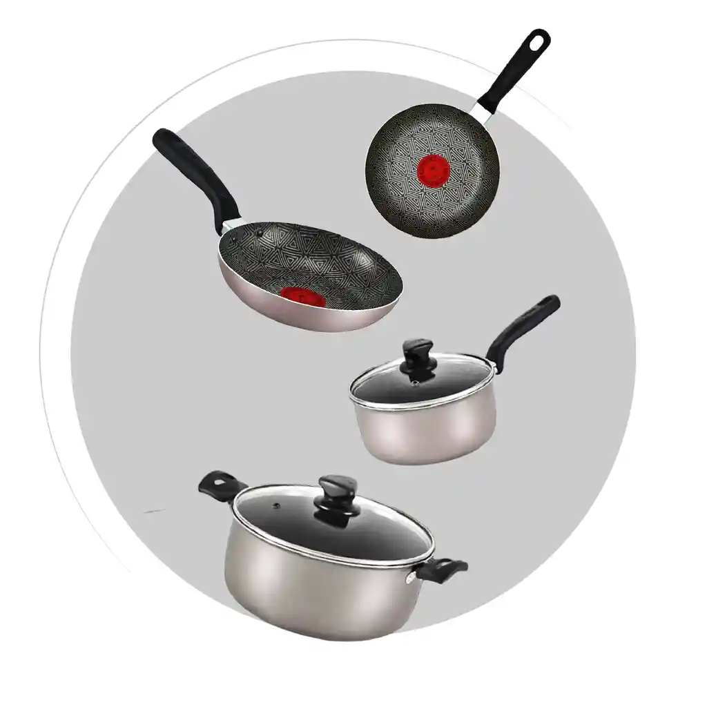 Prepara tus recetas favoritas con la batería de cocina Imusa Triforce, diseñada para durar hasta 3 veces más gracias a su recubrimiento antiadherente premium. Cocina más sano sin usar aceite y disfruta una limpieza rápida y sencilla. Su base difusora distribuye el calor de forma uniforme para obtener mejores resultados en menos tiempo. Ideal para familias que buscan calidad, resistencia y practicidad en la cocina diaria. Beneficios principales Antiadherente Triforce: evita que los alimentos se peguen 3 veces más duradera que recubrimientos tradicionales Base difusora para una cocción pareja y más rápida Cocina sin aceite para preparaciones más saludables Fácil de limpiar y mantener como nueva Ideal para uso diario y todo tipo de cocina (gas/eléctrica) Incluye (6 piezas) Sartén 20 cm Sartén 24 cm Olla 24 cm con tapa Caldero 18 cm con tapa