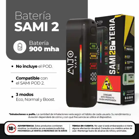 Dispositivo Recargable Marca Mijo Color Negro. Capacidad de la batería: 900 mAh. NO INCLUYE POD. Prohibida la venta a menores de edad. Producto nocivo para la salud que contiene nicotina, sustancia altamente adictiva. Antes de consumir consulte las indicaciones y contraindicaciones de uso.