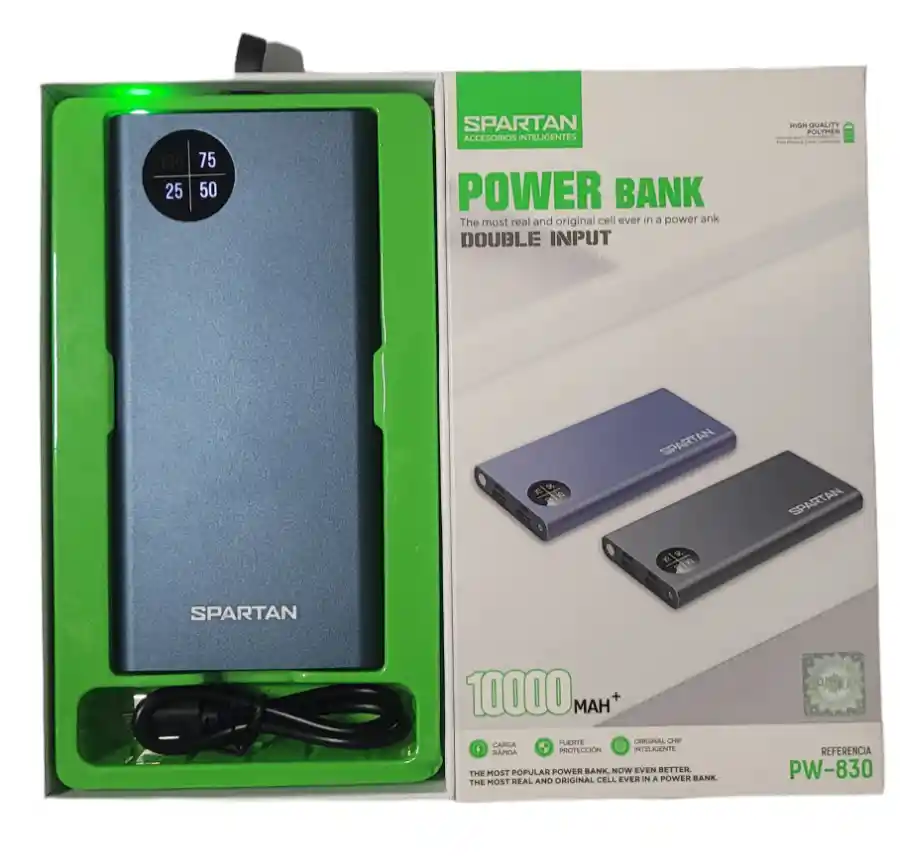 Batería Portátil Para Celular. Power Bank 200% Capacidad De La Batería, Para 2 Cargas Al 100%. Batería Portátil con Linterna. Con 2 Puertos USB Y 1 Puerto tipo C PROTECCION AL SOBREVOLTAJE PROTECCIÓN CONTRA LA SOBRETENSIÓN PROTECCIÓN CONTRA CORTOCIRCUITO PROTECCIÓN DE LA BATERÍA PROTECCIÓN DE TEMPERATURA La energia móvil está estrictamente prohibida en el agua, el producto cortocircuitar el circuito intermall, causando graves daños producto. No exponga a largo plazo a la luz solar intensa al aire libre de energía móvil la exposición a largo plazo dañará el rendimiento del producto, lo que resultará en la temperatura es demasiado alta, los problemas de línea, Aleje la alimentación de líquidos inflamables. gases o explosivos Coloque producto en un lugar ventilado y seco, y evite contacto de colisión con materiales metálicos en cortocircuito No desmonte ni utilice la fuente de alimentación móvil dañada. Especificaciones: Nombre de producto: Cargar el banco de energía Capacidad de la batería: 10000+mAh Reproducción: 5v 1.0A Max Aporte: 5V 1.0A