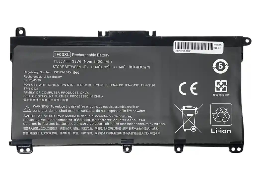 America Store te trae Bateria Portatil Para Hp HSTNN-LB7J TF03XL 14-bf108TX Acerca de este producto Tipo de batería: Li-ion Voltaje de la batería: 11.55V Capacidad: 39W / 3400 mAh Modelo de batería:TF03 Números de pieza compatibles: * TF03XL HSTNN-IB7Y HSTNN-LB7X HSTNN-LB7J HSTNN-UB7J * 920046-121 920046-421 920046-541 920070-855 Compatible con modelos de laptop: * 14-bf108TX 14-bf109TX 14-bf110TX 14-bf111TX 14-bf112TX 14-bf113TX * 14-bf114TX 14-bf115TX 14-bf116TX 14-bf117TX 14-bf118TX 14-bf119TX * 14-bf120TX 14-bf121TX 14-bf122TX 14-bf123TX 14-bf124TX 14-bf007TU * 14-bf008TU 14-bf009TU 14-bf010TU 14-bf011TU 14-bf012TU 14-bf112TU * 14-bf113TU 14-bf114TU 15-cc707TX 15-cc708TX 15-cc709TX * 15-cc710TX 15-cc711TX 15-cc712TX 15-cc713TX 15-cc714TX 15-cc715TX * 15-cc716TX 15-cc717TX 15-cc718TX 15-cc719TX 15-cc720TX 15-cc721TX * 15-cc722TX 15-cc723TX 15-cc724TX 15-cc725TX 15-cc726TX 15-cc727TX * 15-cc728TX 15-cc729TX 15-cc732TX 15-cc733TX 15-cd027AX 15-cd028AX