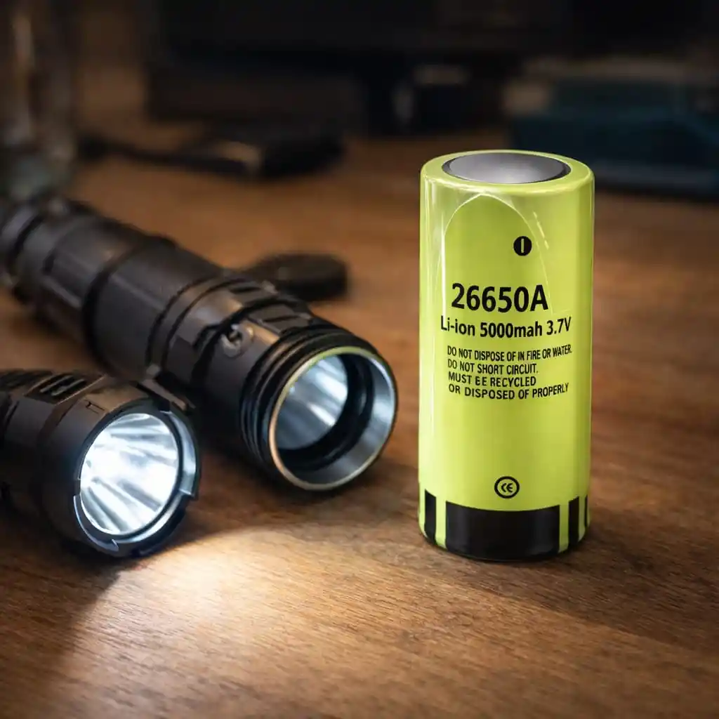 Batería recargable tipo 26650 de ion de litio (Li-ion) con alta capacidad de 5000mAh, ideal para dispositivos que requieren gran rendimiento y larga duración de energía. Gracias a su voltaje nominal de 3.7V, ofrece un suministro estable de energía, siendo perfecta para equipos de alto consumo como linternas LED potentes, bicicletas eléctricas y sistemas solares portátiles. Su diseño robusto permite un uso confiable en diferentes aplicaciones electrónicas compatibles con este tipo de batería. Características * Tipo de batería: 26650 Li-ion * Capacidad: 5000 mAh * Voltaje nominal: 3.7V * Dimensiones: 26 mm de diámetro × 65 mm de longitud * Mayor duración y rendimiento energético * Batería recargable Usos recomendados * Linternas LED de alta potencia * Bicicletas eléctricas * Sistemas solares fuera de la red * Dispositivos electrónicos compatibles con baterías 26650 Contenido del paquete * 1 Batería recargable 26650 Li-ion 5000mAh