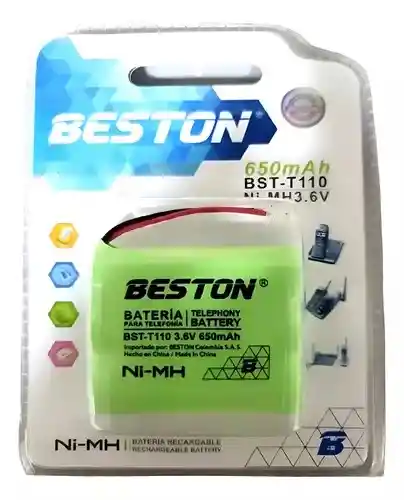 Descripción: La batería recargable Beston BST-T110 es ideal para teléfonos inalámbricos de hogar y oficina. Diseñada con tecnología Ni-MH (Níquel-Hidruro Metálico), ofrece un voltaje de 3.6V y una capacidad de 650mAh, garantizando un rendimiento estable y una larga vida útil. Características: Modelo: BST-T110 Capacidad: 650mAh Voltaje: 3.6V Tipo: Ni-MH (Níquel-Hidruro Metálico) Compatibilidad: Compatible con teléfonos inalámbricos que requieran baterías de estas especificaciones Durabilidad: Diseñada para soportar múltiples ciclos de carga y descarga sin pérdida de rendimiento Ecológica: Libre de cadmio, reduciendo el impacto ambiental Usos recomendados: Teléfonos inalámbricos de hogar y oficina Dispositivos compatibles con baterías de 3.6V Ni-MH Reemplazo de baterías agotadas en teléfonos inalámbricos Incluye: 1 batería recargable Beston BST-T110 Nota: Antes de realizar la compra, se recomienda verificar la compatibilidad con el dispositivo.