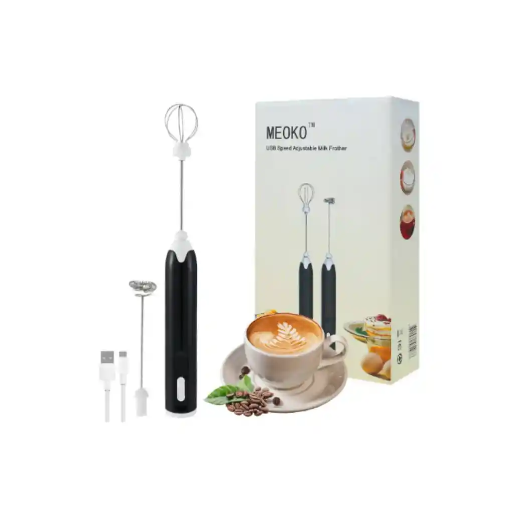 Batidor de mano eléctrico con USB de 1200mAh con tres velocidades giratorias, tiene 2 aspas multiusos de acero inoxidable de grado apto para alimentos y un cuerpo de plástico sin BPA. Pesa 220 gramos y las dimensiones del paquete son 21 cm x 11, 8 cm x 5,2 cm. Se recarga en aproximadamente 60 minutos y su duración depende de las veces que se usa Especificación: Nombre del producto: Espumador de leche Materiales: acero inoxidable + plástico Color: Negro Voltaje: 5V CC Capacidad de la batería: 1200mAh Tiempo de uso: 90 min Tamaño: 31,7 CM/12.5in Longitud del Cable USB: 25CM/9.8in Peso: 0.188KG/6,6 OZ Instrucciones de instalación: 1. Cabezal de mezcla alineado con la muesca del cuerpo insertada. 2. El desmontaje solo necesita tirar suavemente de la lata hacia afuera. 3. Después de la instalación, habrá 4mm/0.16in de espacio de rotación, no es necesario INSERTAR COMPLETAMENTE.