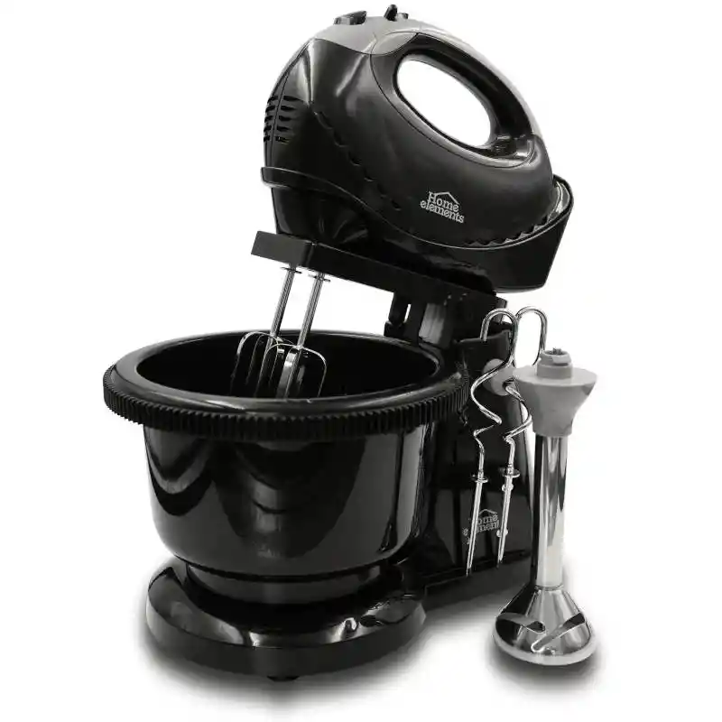 Cuenta con 3 funciones (inmersión, manual, pedestal), 6 velocidades más botón de máxima potencia que la hace más práctica. Tazón plástico giratorio y accesorios de inmersión en acero inoxidable.