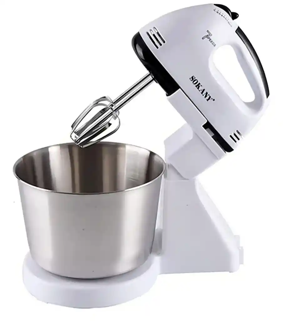 POTENCIA DE 250W, CAPACIDAD DE 2 LITROS, 7 VELOCIDADES MATERIAL DE ACERO INOXIDABLE EN BOWL ES DEMONTABLE INCLUYE BATIDORES PLANOS Y DE GANCHO.