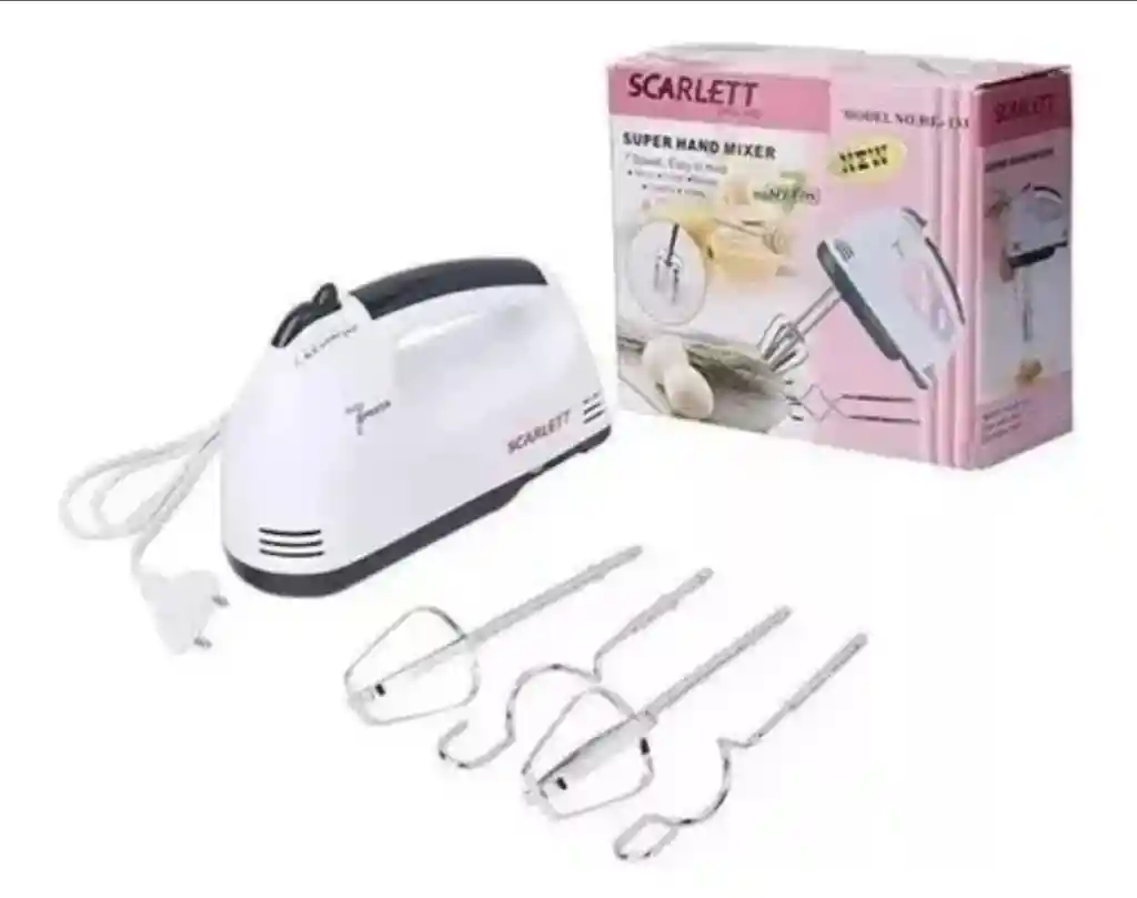 La batidora Scarlett HE-133 es práctica y sencilla de usar. Su diseño compacto y de fácil agarre te permitirá batir mezclas esponjosas sin forzar tus brazos y muñecas. Podrás moler ingredientes en el mismo recipiente en el que se preparan y utilizarla para hacer diferentes tipos de purés, salsas y sopas. Además incluye 2 batidores de gancho.