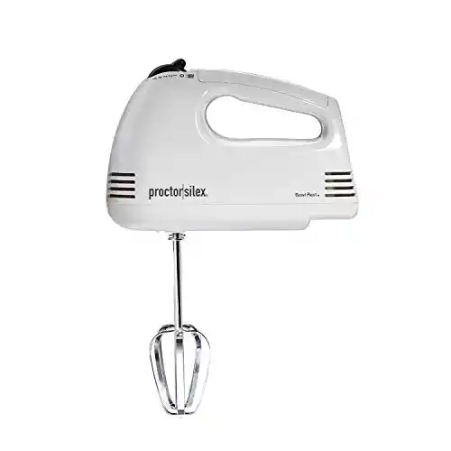 La batidora manual Proctor Silex® Easy Mix ™ le brinda la versatilidad y el poder para mezclar una variedad de ingredientes. Tiene 5 velocidades y 100 vatios de potencia, pero sigue siendo compacto y ligero. Los batidores planos de acero inoxidable se expulsan y se pueden lavar en el lavavajillas.