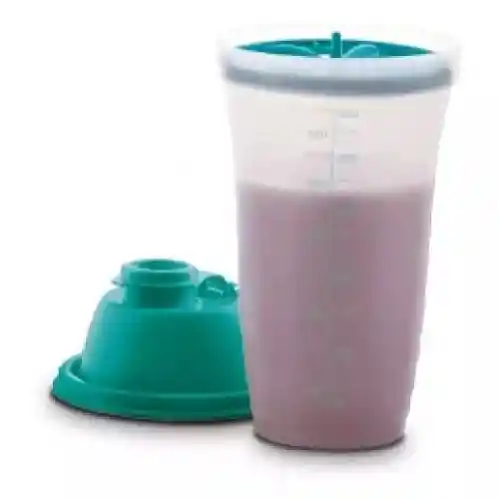 Prepara todo tipo de bebidas, puedes realizar todo tipo de mezclas suaves o preparaciones instantáneas y servir directamente salsas ligeras, vinagreta, huevos, leche saborizada o condensada. cuenta con tapa o sello hermético para evitar que se derrame mientras bates y pico vertedor, tiene un aspa mezcladora que deshace los grumos. Puedes transportar o refrigerar tus preparaciones, contiene medidor en mililitros y onzas. Medidas: 500ml - Ø 9.5 x 21 cm de alto. Producto plástico libre de BPA.