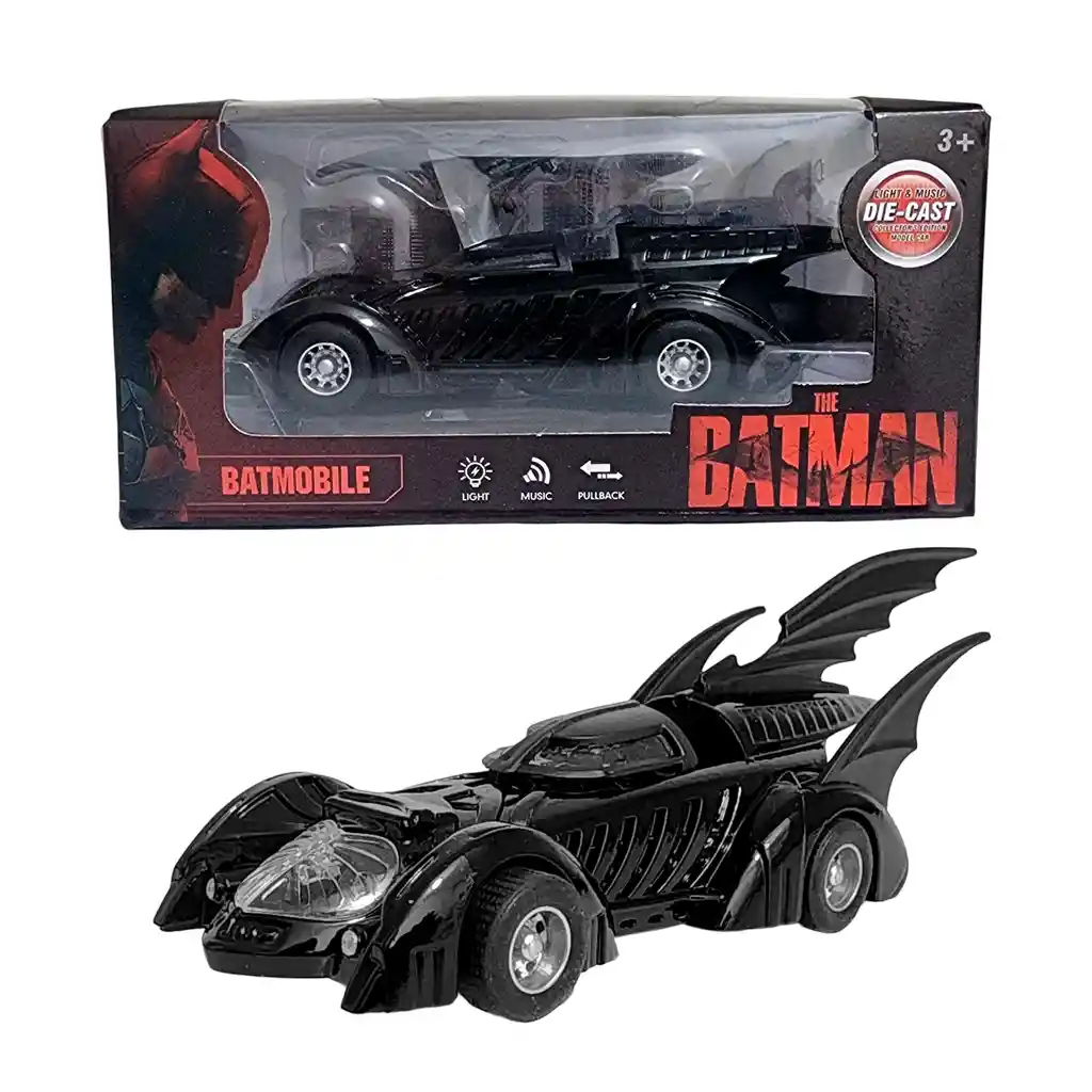El Batimóvil de Batman es una pieza de colección ideal para fanáticos y amantes de los autos icónicos, con un diseño fiel a la versión clásica que combina detalles en color negro mate y acabados metálicos que le dan un aspecto imponente y elegante; perfecto para exhibir, regalar o sumar a tu colección de superhéroes, este vehículo captura toda la esencia del guardián de Gotham y se convierte en un artículo imprescindible para quienes disfrutan del mundo de los cómics y la acción. Ficha Técnica: Material : Metálico /Plástico ABS Edad Apto + 3 años Dimensiones: 13 cm x 5 cm x 3.5 cm Certificado de conformidad: E5-0359-2021 Referencia: 888-29 ** _Para defectos de fábrica o retractos: \_Por favor revise el producto apenas lo reciba y antes de usarlo. No aplican ley de retracto o defectos de fábrica luego de usar el producto. Se manejan máximo 5 días para reportar defectos de fábrica (por ejemplo, producto funciona mal, piezas faltantes, rotas, etc). Para hacer efectiva la devolución el producto debe devolverse con el empaque original, el cual debe estar en buen estado, incluir todos los documentos y las partes completas y sin daños.