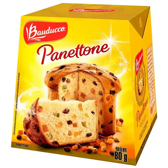 Humedecido, fresco, listo para comer: Bauducco panettone es conocido por ser un pastel tradicional italiano de día festivo.Presentación por 80 g.