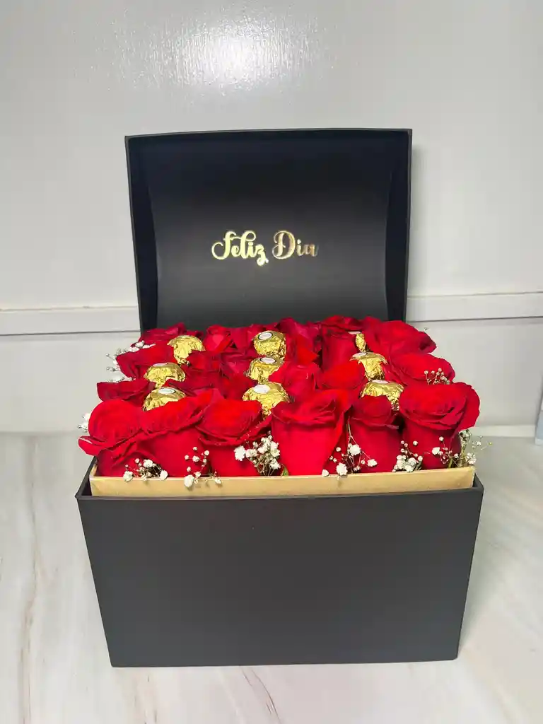 Baúl de lujo con rosas naturales y chocolates Ferrero Rocher. Regalo ideal y elegante para obsequiar en cualquier fecha especial. Colores del baúl a disponibilidad (BLANCO O Y/O NEGRO) COLORES DE ROSAS A DISPONIBILIDAD (informar en el chat color de preferencia) INFORMAR EN EL CHAT LA FRASE PERSONALIZADA DENTRO DEL BAÚL CON ANTICIPACIÓN O DE LO CONTRARIO SE LE COLOCARÁ "FELIZ DÍA".