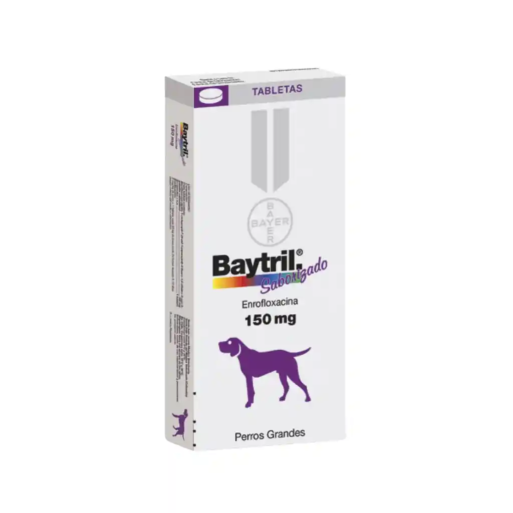 Baytril 150mg es un antibiótico de amplio espectro formulado para tratar infecciones bacterianas en perros y gatos. Gracias a su compuesto activo, la enrofloxacina, actúa eficazmente en combatir infecciones respiratorias, urinarias, gastrointestinales y dermatológicas. Su presentación en tabletas facilita la dosificación precisa y su administración, permitiendo una rápida absorción y acción terapéutica efectiva. Eficaz contra diversas infecciones bacterianas Ofrece fácil administración mezclando con comida Rápida absorción favorece un inicio rápido de acción Apto tanto para perros como para gatos bajo supervisión veterinaria