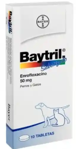 BAYTRIL® TABLETAS 50 mg es un agente antibacteriano desarrollado específicamente para medicina veterinaria. El espectro de BAYTRIL® TABLETAS 50 mg alcanza bacterias grampositivos y gramnegativos, así como micoplasmas y pseudomonas. Por su especial mecanismo de acción BAYTRIL® TABLETAS 50 mg no presenta resistencia cruzada con agentes antibacterianos de otra clase ni genera resistencia. BAYTRIL® TABLETAS 50 mg se absorbe rápidamente y casi por completo después de su administración. Su absorción no se ve influenciada por la ingestión simultánea de alimento. La capacidad de BAYTRIL® TABLETAS 50 mg para penetrar los tejidos es superior a otros agentes bacterianos.