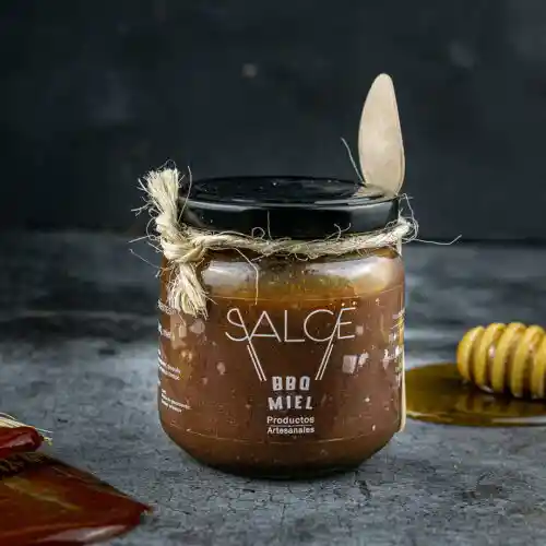 Salsa BBQ mezclada de miel. La recomendamos especialmente para cerdo, pollo y la comida de los niños.