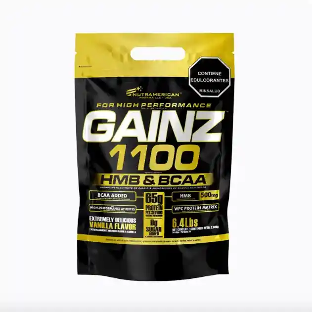 GAINZ HMB BCAA 1100 Producto que incluye en su formula 65 gramos de proteina y un aporte de 1100 calorias por porción, ideal para atletas con grandes requerimientos caloricos o personas que deseen potencializar los resultados deseados. Su formula incluye HMB, ingrediente muy utilizado por atletas y personas en genral debido a sus excelentes beneficios. Gainz contiene bajos niveles de lactosa y grasa. Es elaborado con una matriz de proteinas 100% aisladas y concentradas que maximizan los resultados buscados por los consumidores.