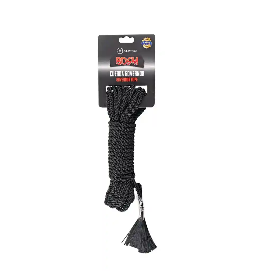 BDSM Cuerda Bondage Governor CamToyz, hecha de material resistente y suave al tacto, esta cuerda te permite crear ataduras seguras y cómodas para explorar tus fantasías eróticas. Con 9,75 m de longitud y un elegante color negro, deja volar tu imaginación y sumérgete en un mundo de placer y dominación. Medidas : Largo: 9.75 m ¡Experimenta el poder del bondage con la Cuerda Bondage Governor!