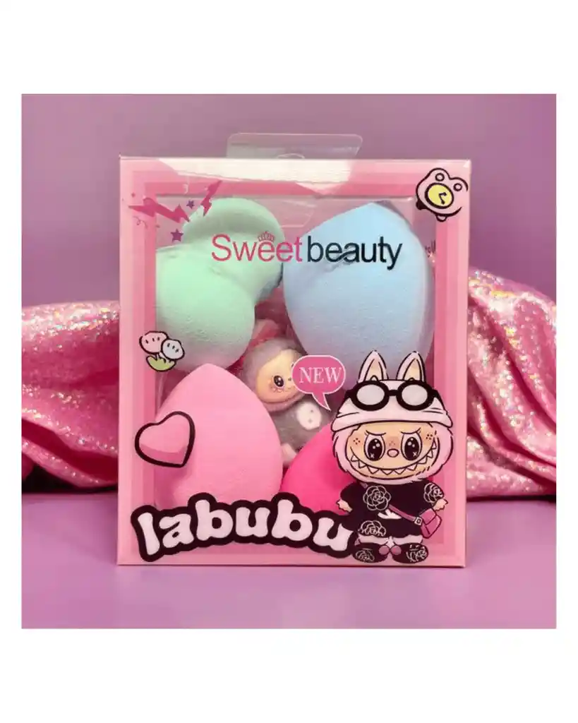 4 ESPONJAS BEAUTY BLENDER PARA MAQUILLAJE INCLUYE UN MINI LLAVERO DE LABUBU