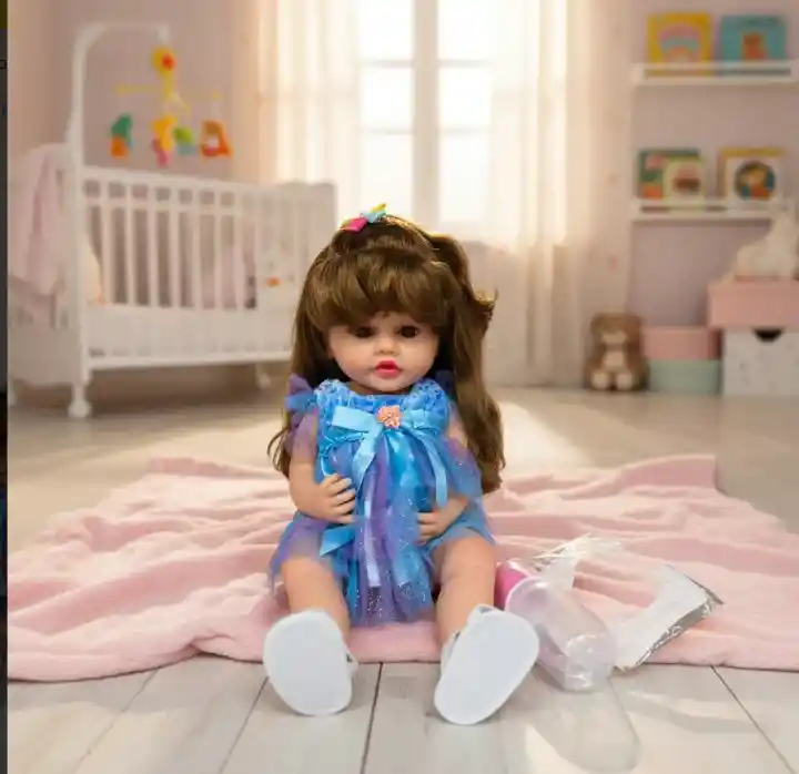 Muñeca Bebé Aspecto Realista M-641, ideal para pequeños a partir de 3 años. Altura de 55 cm, diseñada para ofrecer una experiencia de juego auténtica. Cuerpo articulado que permite diversas posiciones, fomentando la creatividad e imaginación. Fabricada en SILICONA, suave al tacto y resistente, perfecta para el juego diario. Incluye accesorios como biberón, pañal, vestido y sandalias, permitiendo a los niños cuidar de su bebé como en la vida real. Función de sonido que añade un elemento interactivo, haciendo el juego más dinámico y divertido. Diseño atractivo y realista que brinda horas de entretenimiento y aprendizaje. Ideal para fomentar la empatía y el juego simbólico.
