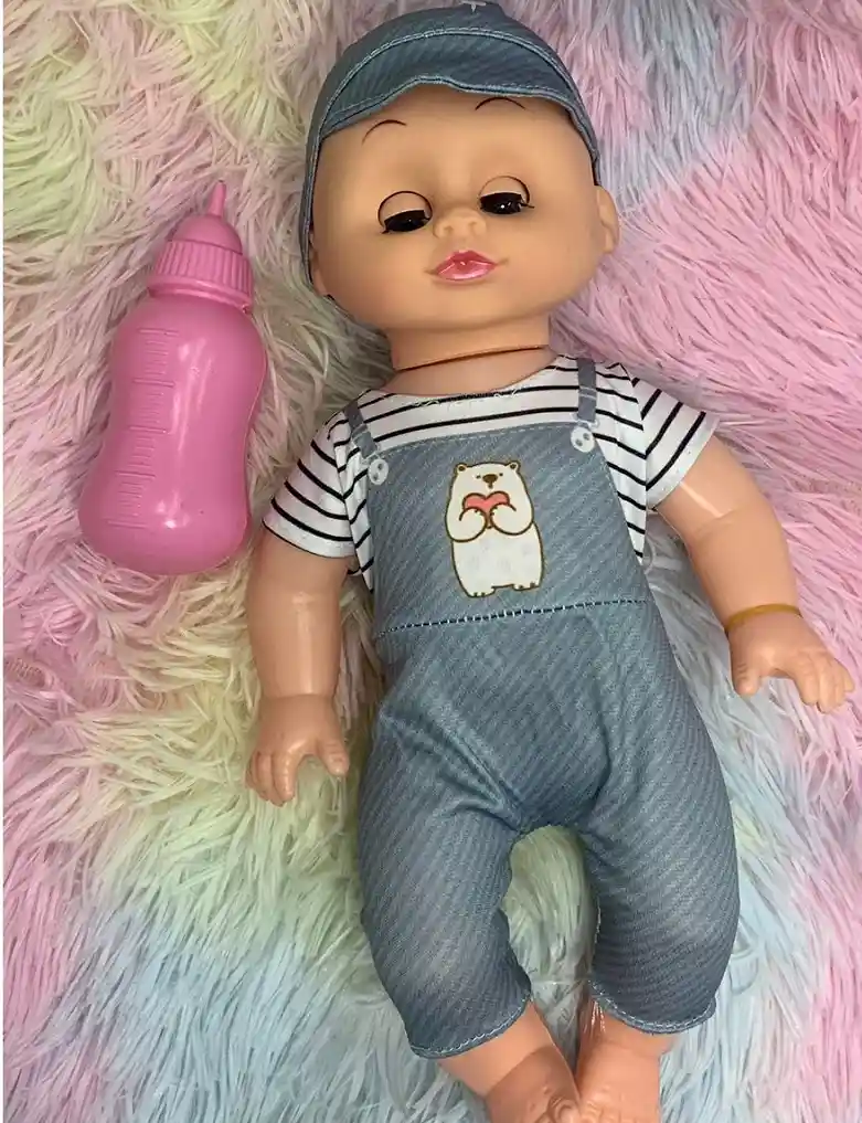 Este adorable bebé de juguete es el compañero perfecto para tu pequeño. Con su ropita puesta, gorra y su tetero listo para alimentar, ofrece horas de diversión y juego imaginativo. La gorra le da un toque de moda al bebé, ¡perfecto para cualquier aventura de juego! Este bebé de juguete es el regalo ideal para cumpleaños o simplemente para consentir a tu niño o niña con un compañero de juegos adorables. Incluye biberón Ropa + gorra Batería