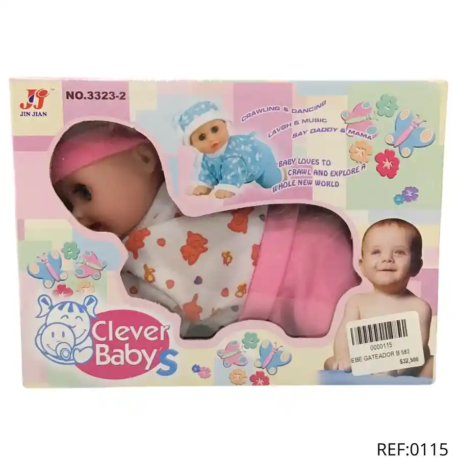Bebé gateador con sonido, música y frases. Perfecto para juegos de rol y estimulación sensorial.