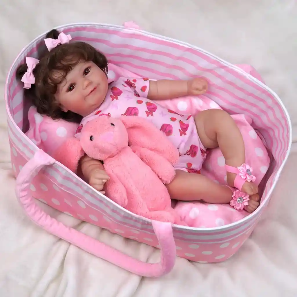 Bebé Reborn Adara con moisés. Muñeca realista y encantadora, ideal para coleccionistas y amantes de las muñecas. Incluye un adorable moisés para juegos y exhibición. Calidad superior y detalles auténticos.