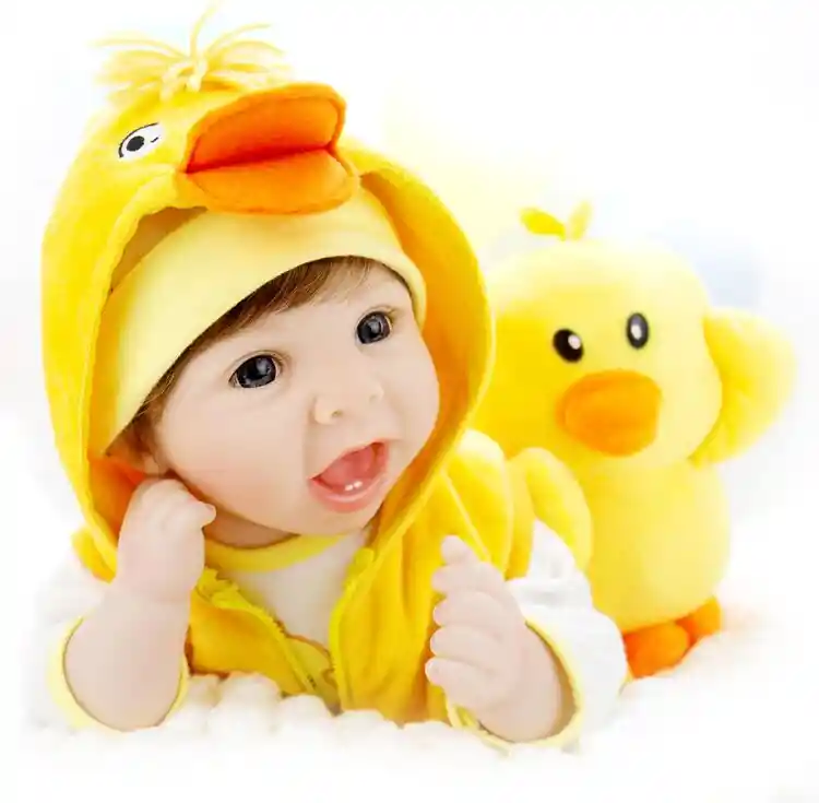 **Bebé Reborn Emiliano Pollito:** Emiliano viene vestido con un adorable traje de pollito, perfecto para añadir un toque de ternura a cada momento.