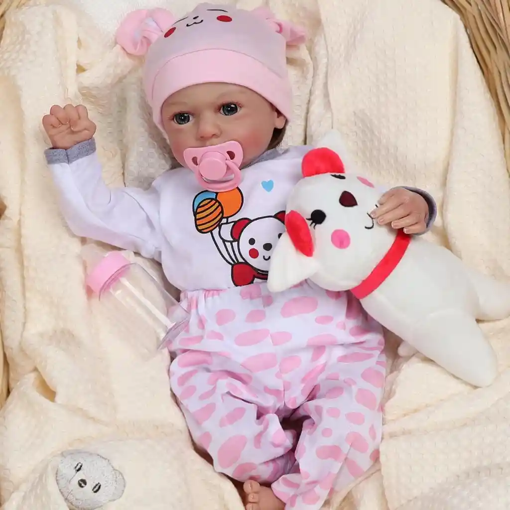 Magdalena es una encantadora muñeca reborn, meticulosamente diseñada para parecer un bebé realista y adorable. Con una altura de 47 cm, Magdalena presenta un cuerpo de algodón suave que ofrece una sensación acogedora al sostenerla.