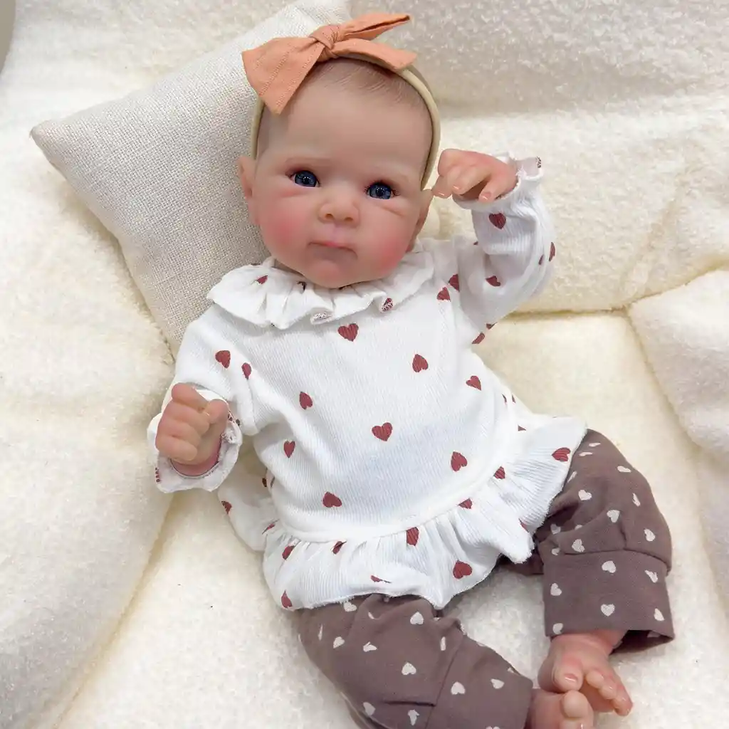 El **Bebé Reborn Mia Ropa Corazones** tiene detalles realistas y un conjunto con estampado de corazones. Perfecto para jugar o coleccionar. bebé reborn | muñeca realista | ropa de corazones | juguete coleccionable | detalles realistas | bebé de juguete | juego imaginativo | muñeca con estilo | regalo infantil | muñeca para niñas