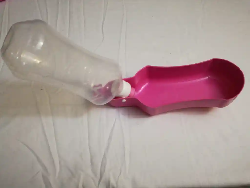 Hermoso bebedero para mascotas de tamaño grande color rosado.
