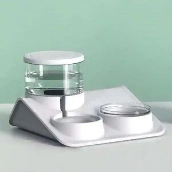 Dispensador de agua automático para mascotas, contiene cuenco para alimento y es elevado. - Boquilla a prueba de humedad en forma de techo. - Relleno automático de agua. - Filtrado de elementos. - Capacidad de 1.8 Litros. - Elaborado en PP calidad alimentaria. - Totalmente transparente e higiénico. - Incluye el filtro de carbón - Libre de BPA. - Fácil de limpiar.