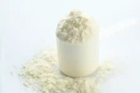 Soya en polvo para preparar bebida tipo leche. La leche de soya tiene alto contenido en vitamina A y E, fitosteroles y en polifenoles. Tiene muchas ventajas nutricionales, proteínas y elementos antioxidantes. No contiene lactosa.
