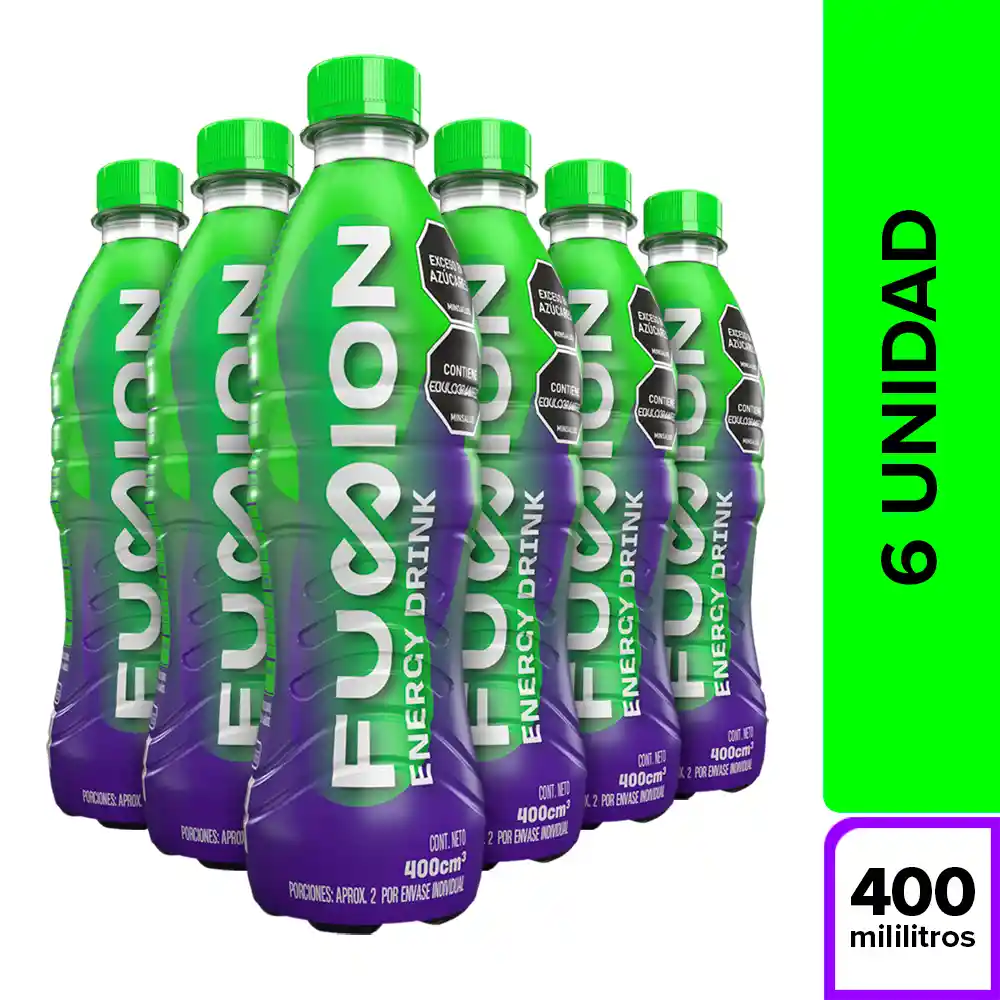 Pack Fusión Contiene 6 Unidades 400 mL c/u. Nueva Bebida Energizante Fusión Con Ingredientes Naturalescontenido Elevado en Cafeína (25Mg/100 mL). La Bebida Energizante no Previene Los Efectos Generados Por el Consumo de Bebidas Alcohólicas. No se Recomiendael Consumo de Bebidas Energizantes Con Bebidas Alcohólicas. Este Producto Solo Podrá Ser Comercializado Expendido y Dirigido a Población Mayor de 14 Años. Este Producto no es Recomendado Para Personas Sensibles a la Cafeína.