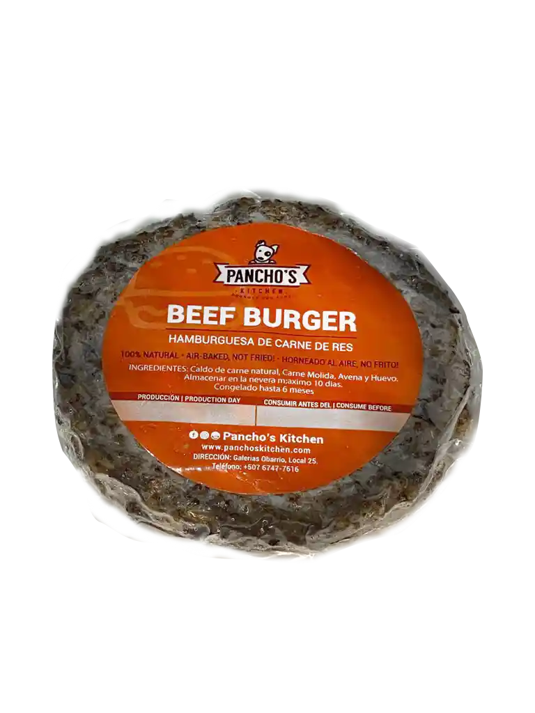 ¡Nuestra nueva hamburguesa de carne de res con ingredientes 100% naturales! Horneada al aire NO frita. Hecha de caldo de res natural, carne de res molida, avena y huevo.
