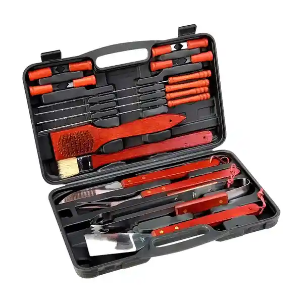 Set Contiene 18 Unidades. Disfruta Del Maletín de Accesorios Para Asados Que Tenemos Para ti Todos Los Complementos Para Diferentes Tipos de Comida Comodidad Sin Gastar Más.