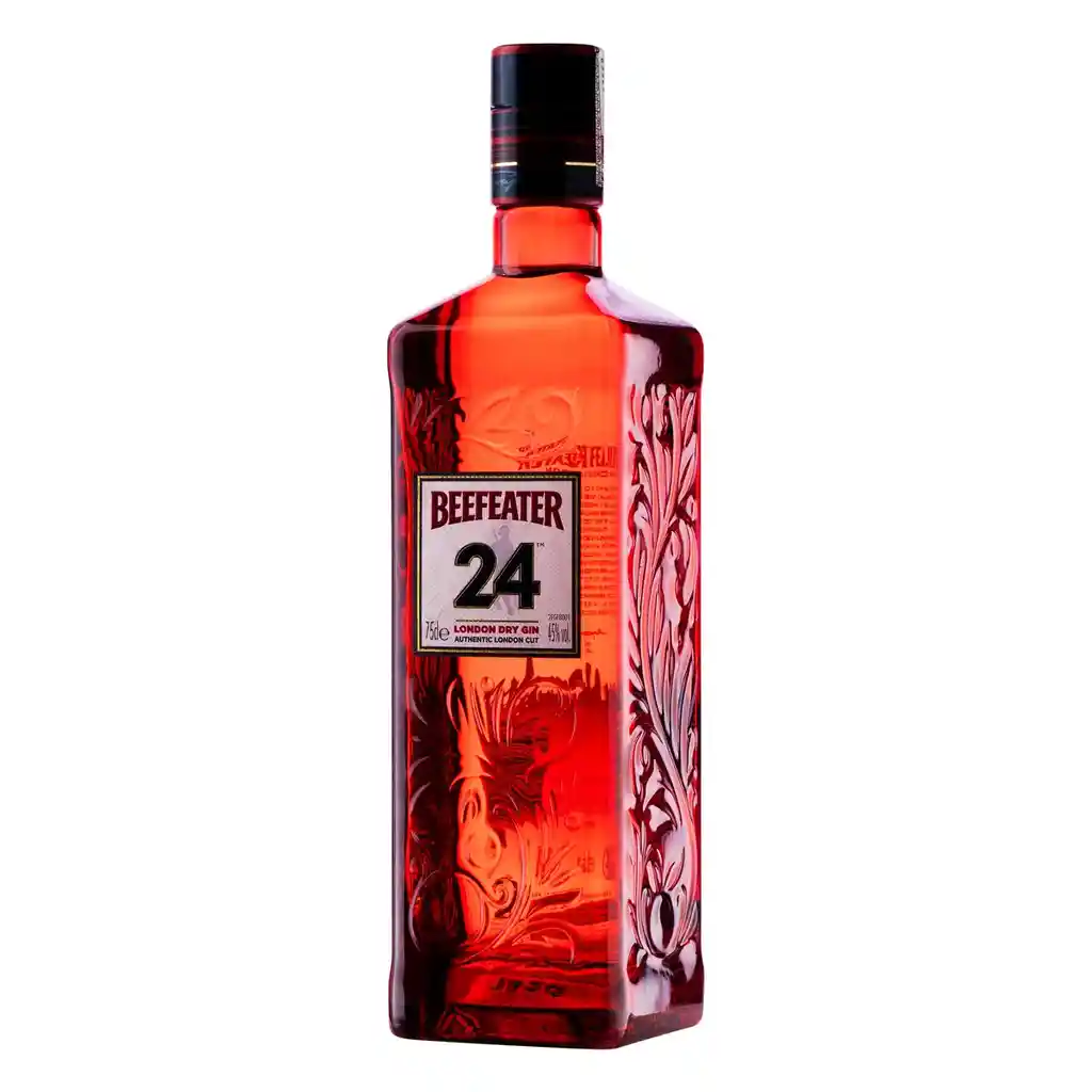 La deliciosa Ginebra Beefeater 24 tiene una mezcla de los mejores tés exóticos. Hecha en Londres con 12 productos botánicos seleccionados manualmente, incluidos té sencha japonés y té verde chino. packing: Botella