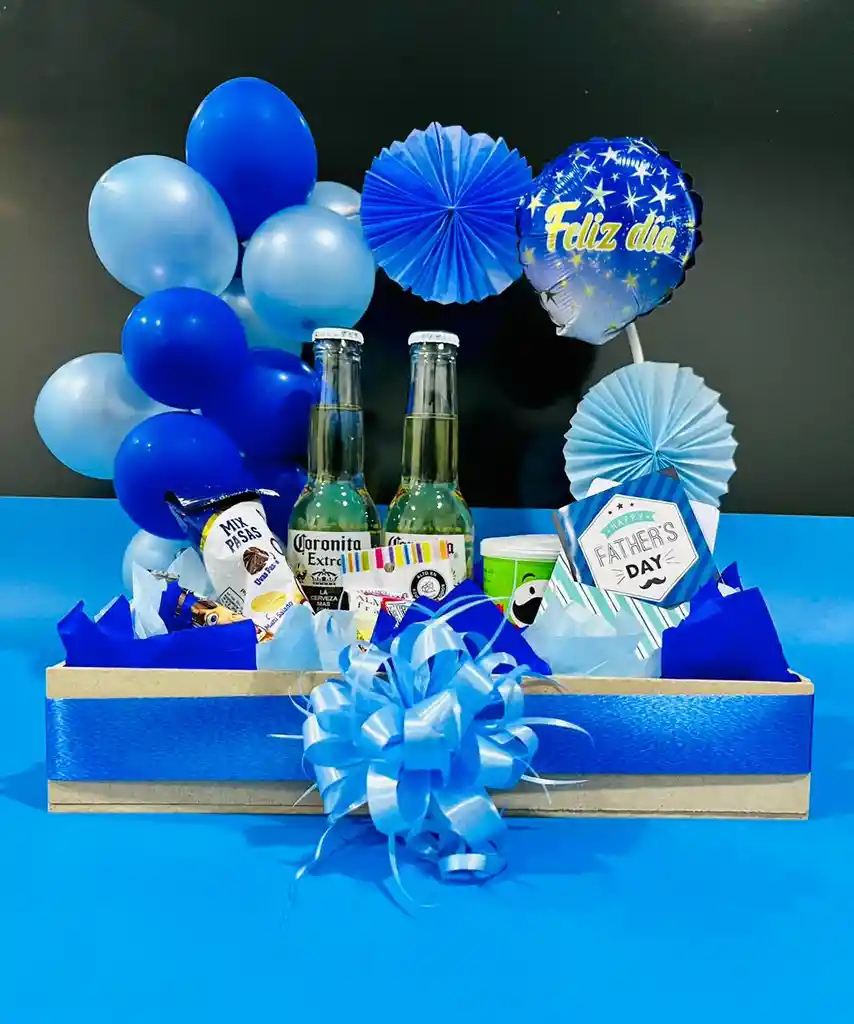 Contiene: 1 Bandeja MDF de 28 x 19 x 5cm 2 Coronitas 1 Pringles Cebolla x 40 gr 1 Almendras 1 Mani La especial 1 Piazza barquillo 1 Chocorramo Mini 1 Hersheys x 43 gr 1 Ponky 1 Galletas Oreo 1 Fini Roller Fresa x 20 gr 2 Burbujas Jet 5 Choco Stop Arco con 14 bombas y 2 rosetones 1 Bomba metalizada circular feliz día 1 Tarjeta 1 Moño y cinta decorativa Se puede elegir el color de las bombas o el diseño, favor escribir en el chat o a traves de nuestro instagram boomoutsurprise.co