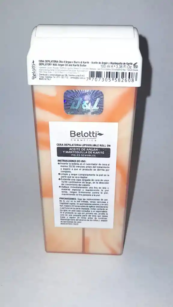 Cera Depilatoria 100ml Karite Y Aceite De Argan Belotti Rollon liposoluble .inserte la botella en el calentador de la cera .entre 20 a 30 minutos antes del tratamiento y espere que el producto se derrita por completo
