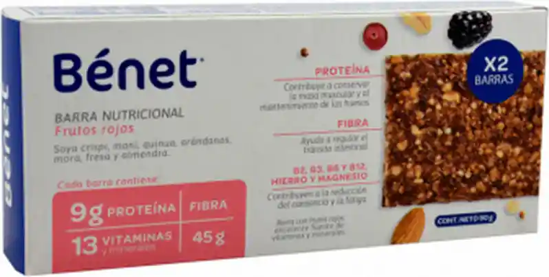 Alimento a base de sotya crispi, maní, quinua, arándanos, mora, fresa y almendras. Con alta fuente de fibra, proteínas y hierro. Presentación x 2 unidades