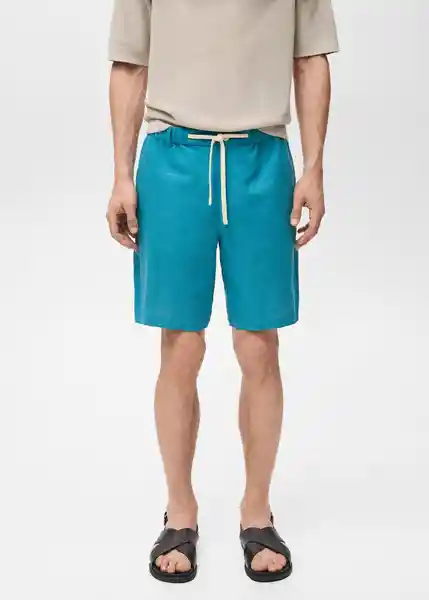 Cierre Delantero de Cremallera y Botón Cintura Con Goma Elástica Cordón Ajustable el Modelo Mide 190 cm y Lleva Una Talla 42 Straight Fit Tejido Mezcla de Lino y Algodón un Bolsillo de Parche y Botón en la Parte Posterior - 87037888_46.
