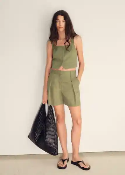 Cierre Delantero de Cremallera Doble Gancho y Botón Interior Diseño Corto Diseño Recto Dos Bolsillos Laterales Estilo Traje Tejido Mezcla de Lino Tiro Alto Total Look Trabillas - 17071153_37.