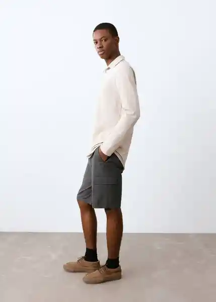 Cierre de Cremallera y Botón Cintura Elástica Diseño Corto Diseño Recto Dos Bolsillos Cargo Dos Bolsillos Laterales Tejido de Algodón - 27025936_95.